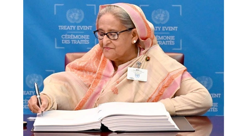 বেশি মাছ ধরা এবং অন্যান্য মানবিক কর্মকাণ্ডের কারণে ভঙ্গুর সামুদ্রিক পরিবেশের ক্ষতির হাত থেকে বিশ্বের মহাসাগর ও নদীগুলোকে রক্ষায় মেরিন বায়োডাইভারসিটি অব এরিয়াজ বিয়ন্ড ন্যাশনাল জুরিসডিকশন (বিবিএনজে) চুক্তিতে স্বাক্ষর করেছেন প্রধানমন্ত্রী শেখ হাসিনা।