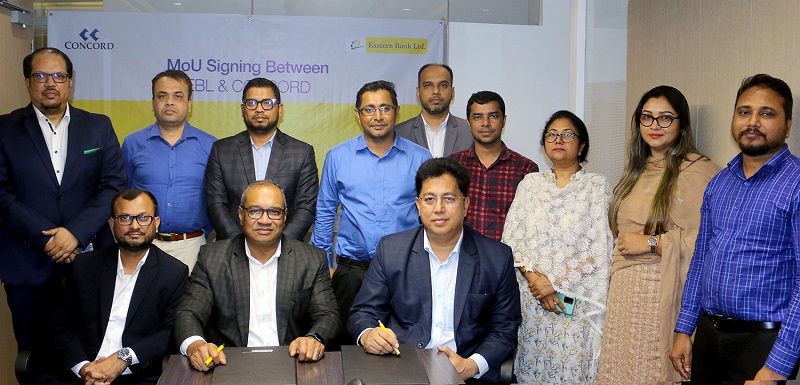 ইস্টার্ণ ব্যাংক পিএলসি (ইবিএল) ও কনকর্ড রিয়েল এস্টেট সম্প্রতি একটি চুক্তিতে স্বাক্ষর করেন। ঢাকার ইবিএল প্রধান কার্যালয়ে ইবিএল’র ডিএমডি এবং রিটেইল ও এসএমই ব্যাংকিং প্রধান এম. খোরশেদ আনোয়ার এবং কনকর্ড রিয়েল এস্টেটের নির্বাহী পরিচালক (মার্কেটিং এন্ড সেলস) মোঃ এনামুল হক এই চুক্তিটি স্বাক্ষর করেন।