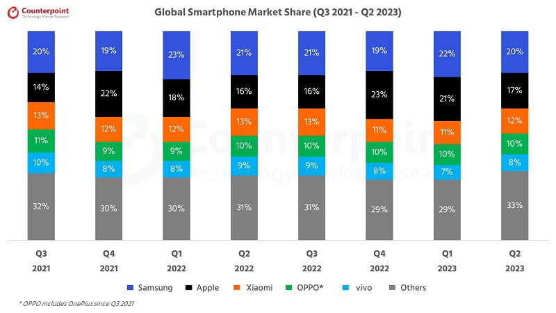 উল্লেখ্য, ২০২৩ সালের প্রথম প্রান্তিকেও (কিউ১) ২২ শতাংশ বাজার হিস্যা নিয়ে স্মার্টফোন বাজারের শীর্ষে ছিল স্যামসাং। প্রতিনিয়ত সর্বাধুনিক প্রযুক্তি ও সেরা দামে সেরা ফিচারের ফোন নিয়ে আসার মধ্য দিয়ে স্মার্টফোনের আন্তর্জাতিক বাজারে অবস্থান ধরে রেখেছে স্যামসাং।