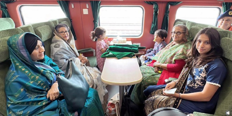 পরিবারের সদস্যদের সঙ্গে নিয়ে টিকিট কেটে ট্রেনে চড়ে পদ্মা সেতু পাড়ি দিয়েছেন প্রধানমন্ত্রী শেখ হাসিনা। মঙ্গলবার দুপুরের দিকে ট্রেনে পদ্মা পার হয়ে ভাঙ্গা রেলস্টেশনে পৌঁছান। এসময় বঙ্গবন্ধুর কনিষ্ঠ কন্যা প্রধানমন্ত্রীর ছোটবোন শেখ রেহানা ও প্রধানমন্ত্রীর পরিবারের তিন শিশু সদস্যও সেখানে উপস্থিত ছিলেন।