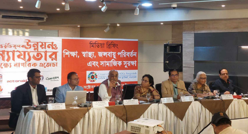 বুধবার (১১ অক্টোবর) রাজধানীর ব্র্যাক সেন্টারে ‘অন্তর্ভুক্তিমূলক উন্নয়ন ও ন্যায্যতার লক্ষ্যে নাগরিক এজেন্ডা: শিক্ষা, স্বাস্থ্য, জলবায়ু পরিবর্তন এবং সামাজিক সুরক্ষা’ শীর্ষক মিডিয়া ব্রিফিংয়ে তিনি এসব কথা বলেন।