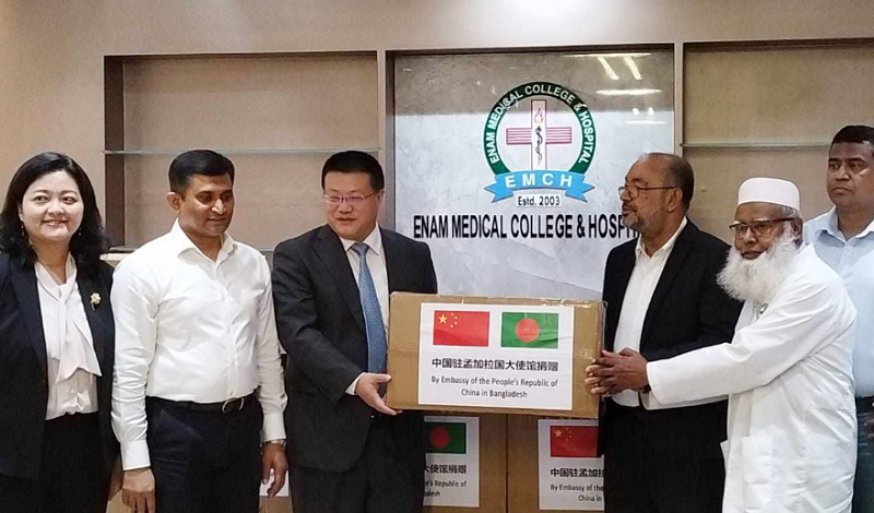 বাংলাদেশে চীন দূতাবাসের ফাস্ট সেক্রেটারি লি জিয়ান, ল্যাং ল্যাং ও জিং চ্যান, এনাম মেডিকেল কলেজ হাসপাতালের প্রধান নির্বাহী কর্মকর্তা আনোয়ারুল কাদের নাজিমসহ হাসপাতালের বিভিন্ন কর্মকর্তারা এ সময় উপস্থিত ছিলেন।