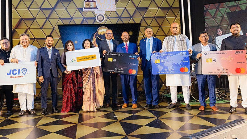 ইস্টার্ন ব্যাংক পিএলসি (ইবিএল) ও জুনিয়র চেম্বার ইন্টারন্যাশনাল বাংলাদেশ (জেসিআই) চেম্বারের যৌথ উদ্যোগে কো-ব্র্যান্ড ক্রেডিট এবং প্রি-পেইড কার্ডের আনুষ্ঠানিক উদ্বোধন করা হয়েছে। শুক্রবার (১৩ অক্টোবর) রাজধানীর শেরাটন হোটেলে কার্ডের আনুষ্ঠানিক উদ্বোধন করা হয়।
