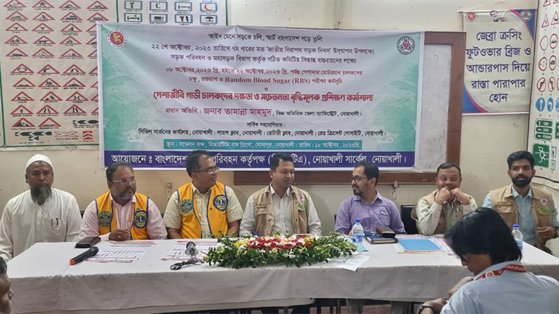 সড়ক দুর্ঘটনা হ্রাসকল্পে পেশাজীবী গাড়ি চালকদের দক্ষতা ও সচেতনতা বৃদ্ধির লক্ষ্যে নোয়াখালীতে সচেতনতামূলক প্রশিক্ষণ কর্মশালা অনুষ্ঠিত হয়েছে।