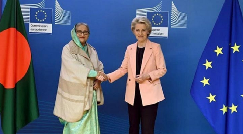 প্রধানমন্ত্রী শেখ হাসিনা ও ইউরোপীয় কমিশনের চেয়ারম্যান উরসুলা ভন ডার লেয়েন বাংলাদেশ সরকার ও ইউরোপীয় বিনিয়োগ ব্যাংকের (ইআইবি) মধ্যে ৩৫০ মিলিয়ন ইউরো অর্থায়ন চুক্তিসহ বেশ কয়েকটি চুক্তি সই প্রত্যক্ষ করেন।