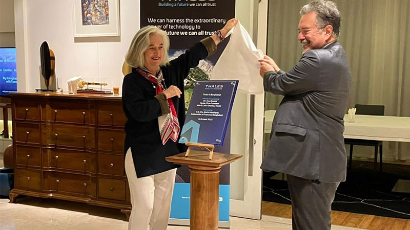 গত ১১ অক্টোবর ঢাকায় নিযুক্ত ফরাসি রাষ্ট্রদূত ম্যারি মাসদুপুয়ের বাসায় এক অনুষ্ঠানে থ্যালেসের বাংলাদেশ অফিসের ফলক উন্মেচন করা হয়। ফলক উন্মোচনের সময় রাষ্ট্রদূতের সঙ্গে থ্যালেসের এশিয়া-ল্যাটিন আমেরিকা অঞ্চলের জ্যেষ্ঠ ভাইস প্রেসিডেন্ট গাই বোনাসি উপস্থিত ছিলেন। উপস্থিত ছিলেন প্রতিষ্ঠানটির বেশ কিছু গ্রাহকসহ বড় সংখ্যক অংশীজন।