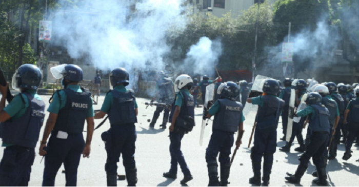 বৃহস্পতিবার (২ নভেম্বর) দুপুরের দিকে পূরবী সিনেমা হলের সামনে তাদের মধ্যে এ সংঘর্ষ শুরু হয়। প্রথমে আইনশৃঙ্খলা রক্ষাকারী বাহিনীর পক্ষ থেকে শ্রমিকদের সড়কে অবস্থান না করে সড়ক ছেড়ে দেওয়ার জন্য অনুরোধ জানানো হয়। কিন্তু সড়কে অবস্থান করে যান চলাচল বন্ধ করে দেওয়ায় পরিস্থিতি নিয়ন্ত্রণে পুলিশ টিয়ার শেল ও সাউন্ড গ্রেনেড ছোড়ে। পুলিশের সঙ্গে বিজিবির একটি দলও ছিল। তবে বিজিবি দল টিয়ারশেল বা সাউন্ড গ্রেনেড ছোড়েনি।