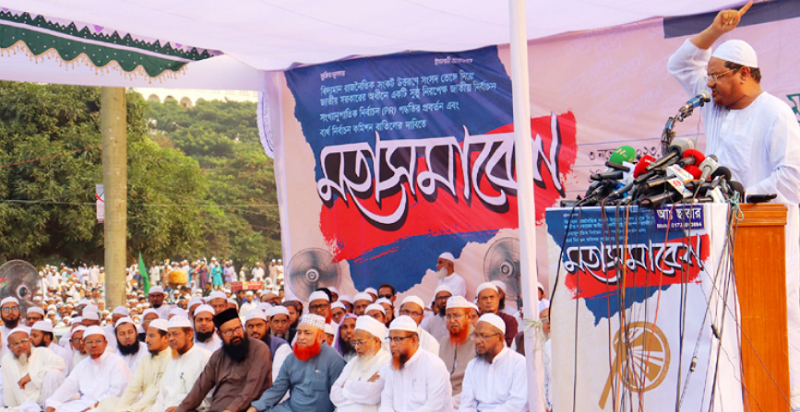 শুক্রবার (৩ নভেম্বর) বিকেলে রাজধানীর সোহরাওয়ার্দী উদ্যানে চলমান রাজনৈতিক সংকট নিরসনে চলতি সংসদ ভেঙে জাতীয় সরকারের অধীনে সুষ্ঠু ও নিরপেক্ষ নির্বাচনের দাবিতে আয়োজিত মহাসমাবেশ এ ঘোষণা দেন দলটির আমির ও পির সাহেব চরমোনাই মুফতী সৈয়দ মুহাম্মদ রেজাউল করীম।