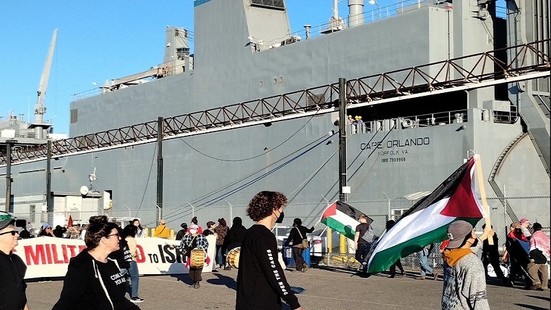 যুক্তরাষ্ট্রের ওয়াশিংটন অঙ্গরাজ্যের বন্দর থেকে ইসরাইলমুখী অস্ত্রবাহী জাহাজ আটকে দিয়েছেন দেশটির বিক্ষোভকারীরা। তারা বলেছেন, যুদ্ধাস্ত্র বোঝাই করে এই যুদ্ধজাহাজ যুক্তরাষ্ট্র থেকে ইসরাইল যাচ্ছিল।