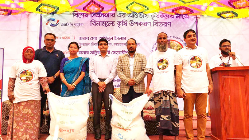এনসিসি ব্যাংক সামাজিক দায়বদ্ধতার অংশ হিসেবে সম্প্রতি উত্তরবঙ্গের রংপুর, দিনাজপুর, সৈয়দপুর ও কুড়িগ্রামের রাজারহাটে ১,৬০০ প্রান্তিক কৃষকদের মাঝে বিনামূল্যে কৃষি উপকরণ বিতরণ করেছে।