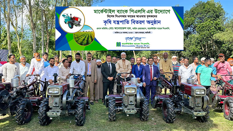 মার্কেন্টাইল ব্যাংক পিএলসি নরসিংদীর রায়পুরায় বিশেষ সিএসআর ফান্ডের আওতায় কৃষকদের মাঝে কৃষি যন্ত্রপাতি অনুদান দিয়েছে।