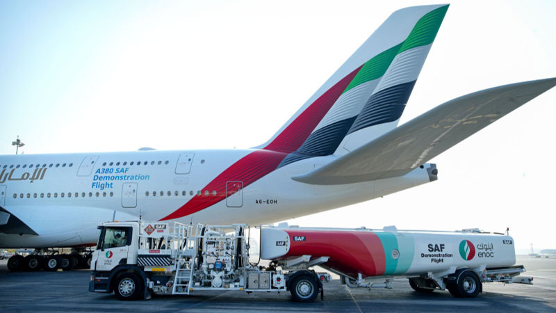 চলতি বছরেই শতভাগ SAF ব্যবহার করে এমিরেটস সফলভাবে বোয়িং ৭৭৭-৩০০ইআর একটি ফ্লাইট পরিচালনা করে। এটি ছিল এতদাঞ্চলে প্রথম এজাতীয় ফ্লাইট। গত মাসে প্রথম বারের মত দুবাই আন্তর্জাতিক বিমানবন্দর থেকে টেকসই জ্বালানী ব্যবহার করে একটি নিয়মিত ফ্লাইট উড্ডয়ন করে শেল এভিয়েশন দুবাই বিমানবন্দরের জন্য ৩ লক্ষ ১৫ হাজার গ্যালন ব্লেন্ডেড SAF সরবরাহ করে।