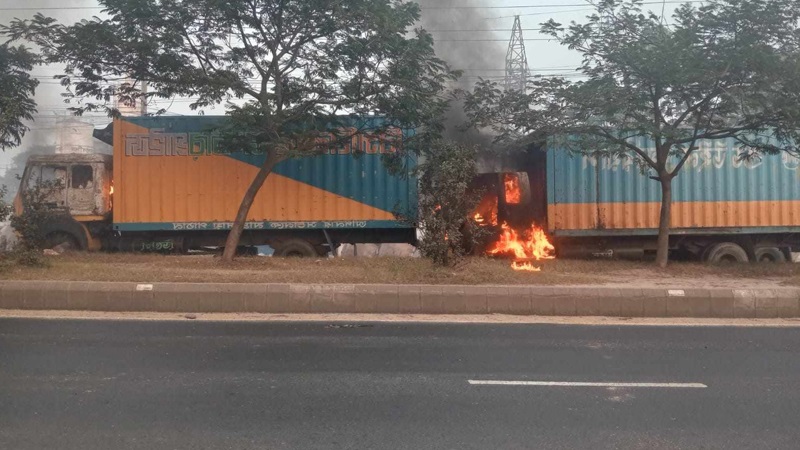 গাজীপুর ফায়ার সার্ভিসের স্টেশন অফিসার আব্দুস সামাদ বলেন, অবরোধ সমর্থকরা দুটি কাভার্ডভ্যানে আগুন ধরিয়ে দিয়ে পালিয়ে যায়। ফায়ার সার্ভিসের দুটি ইউনিট আগুন নিয়ন্ত্রণে আনে। এ ঘটনায় কেউ হতাহত হয়নি।