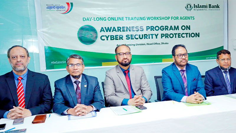 ইসলামী ব্যাংক বাংলাদেশ পিএলসির উদ্যোগে ঢাকা নর্থ, চট্টগ্রাম সাউথ, ময়মনসিংহ ও নোয়াখালী জোনের এজেন্ট ব্যাংকিং কর্মকর্তাদের জন্য ‘সাইবার সিকিউরিটি প্রটেকশন’ বিষয়ক প্রশিক্ষণ কর্মশালা মঙ্গলবার (২৮ নভেম্বর) ভার্চুয়াল প্লাটফর্মে অনুষ্ঠিত হয়।