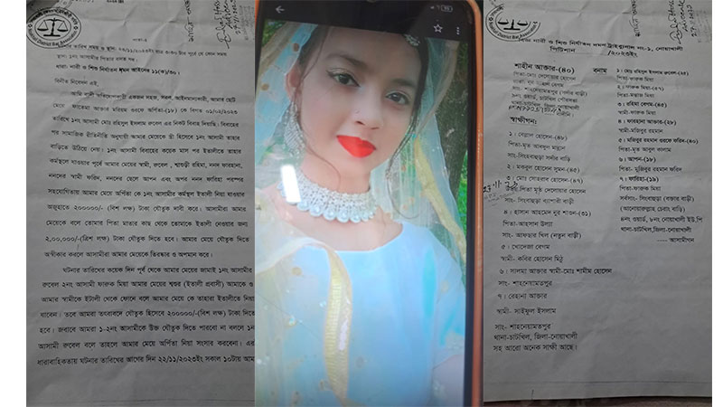 মামলার বাদী ও মামলা সূত্রে জানা যায়, চাটখিল উপজেলার সিংবাহুড়া গ্রামের ইতালী প্রবাসী মো. ফারুক মিয়ার ছেলে ইতালী প্রবাসী রাইসুল ইসলাম রুবেলের সঙ্গে চলতি বছর ২ ফেব্রুয়ারি পারিবারিকভাবে ১০ লাখ টাকা দেনমোহরে অর্পিতার বিয়ে হয়। বিয়ের পর তার স্বামী ইতালী চলে যান। গত দুই মাস আগে তার শ্বশুর-শ্বাশুড়ি অর্পিতাকে ইতালী নিয়ে যাওয়ার জন্য তার জাতীয় পরিচয়পত্রের বয়স সংশোধন করে এবং ইতালী যাওয়ার জন্য ২০ লাখ টাকা তার বাবার বাড়ি থেকে এনে দেওয়ার জন্য চাপ দেয়। কিন্তু অর্পিতার বাবা কৃষি কাজ করার কারণে ২০ লাখ টাকা দেওয়া সম্ভব হয় নি। এ নিয়ে অর্পিতার শাশুড়ি রহিমা বেগম (৫০) ও তার ননদ ফারহানা প্রতিনিয়ত তাকে মানসিক ও শারীরিক নির্যাতন করতে শুরু করে।
