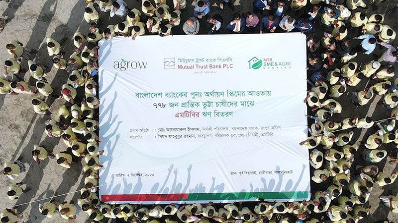 মিউচুয়াল ট্রাস্ট ব্যাংক পিএলসি (এমটিবি) সম্প্রতি দেশের খাদ্য নিরাপত্তা নিশ্চিত করতে এবং আমদানি নির্ভরতা কমাতে বাংলাদেশ ব্যাংকের পুনঃঅর্থায়ন স্কিমের আওতায় এমটিবি উলিপুর শাখার মাধ্যমে লালমনিরহাটে এক উন্মুক্ত ঋণ বিতরণ অনুষ্ঠান আয়োজন করে।