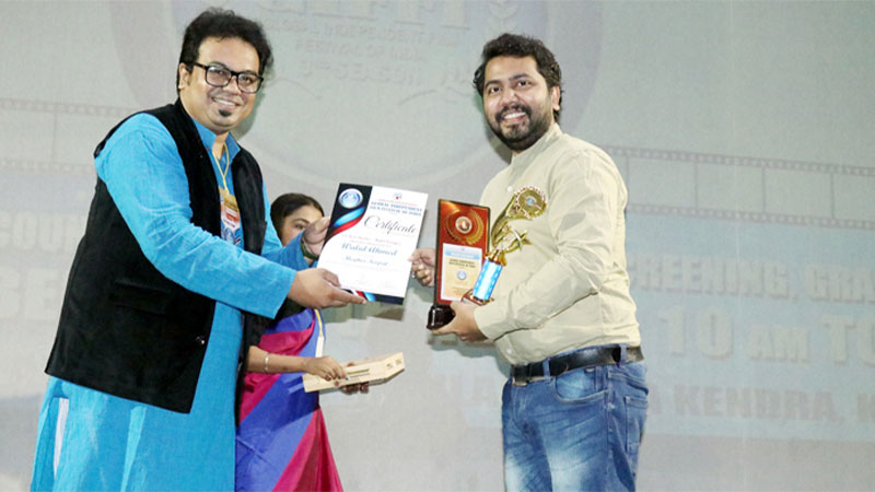 শুক্রবার (১ ডিসেম্বর) কলকাতার মৌলালি যুব কেন্দ্রের স্বামী বিবেকানন্দ অডিটোরিয়ামে ১০টা থেকে রাত ৮টা পর্যন্ত এক আড়ম্বরপূর্ণ অনুষ্ঠানে ‘মেঘের কপাট’ চলচ্চিত্রের পরিচালক ওয়ালিদ আহমেদ ও প্রযোজক আফরোজা মোমেনের হাতে এই পুরস্কার তুলে দেওয়া হয়।
