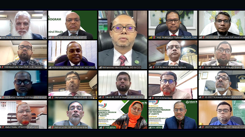 ইসলামী ব্যাংক ট্রেনিং অ্যান্ড রিসার্চ একাডেমির (আইবিটিআরএ) উদ্যোগে এজেন্ট ব্যাংকিং প্রশিক্ষকদের নিয়ে “প্রফেশনাল অ্যাওয়ারনেস প্রোগ্রাম ফর ট্রেইনার্স” শীর্ষক প্রশিক্ষণ কর্মসূচি সোমবার (১১ ডিসেম্বর) ভার্চুয়াল প্লাটফর্মে অনুষ্ঠিত হয়েছে।