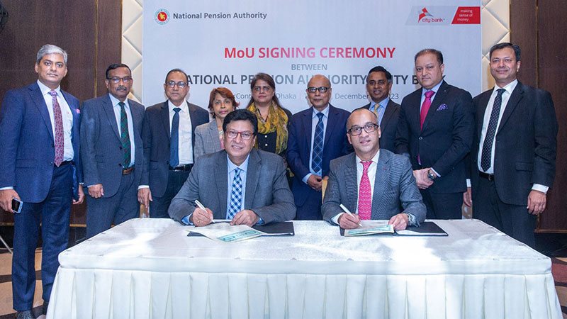 রাজধানীর একটি হোটেলে আয়োজিত এই সমঝোতা স্মারক অনুষ্ঠানে প্রধান অতিথি অর্থ সচিব ড. মোঃ খায়েরুজ্জামান মজুমদারের উপস্থিতিতে জাতীয় পেনশন কর্তৃপক্ষের চেয়ারম্যান ও অর্থ বিভাগের অতিরিক্ত সচিব কবিরুল ইজদানী খান এবং সিটি ব্যাংকের ব্যবস্থাপনা পরিচালক ও সিইও মাসরুর আরেফিন এই সমঝোতা স্মারকে স্বাক্ষর করেন।