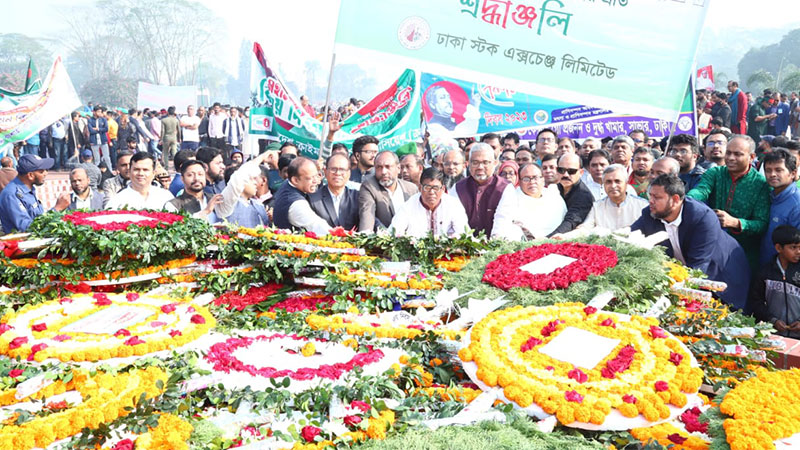 ১৬ ডিসেম্বর মহান বিজয় দিবসে সকাল ৯ টায় ঢাকা স্টক এক্সচেঞ্জ লিমিটেডের চেয়ারম্যান অধ্যাপক ড. হাফিজ মুহম্মদ হাসান বাবুর নেতৃত্বে পরিচালনা পর্ষদ ও ব্যবস্থাপনা কর্তৃপক্ষ সাভার জাতীয় স্মৃতিসৌধে বীর শহীদদের পুষ্পার্ঘ্য অর্পন করে শ্রদ্ধা নিবেদন করেন৷