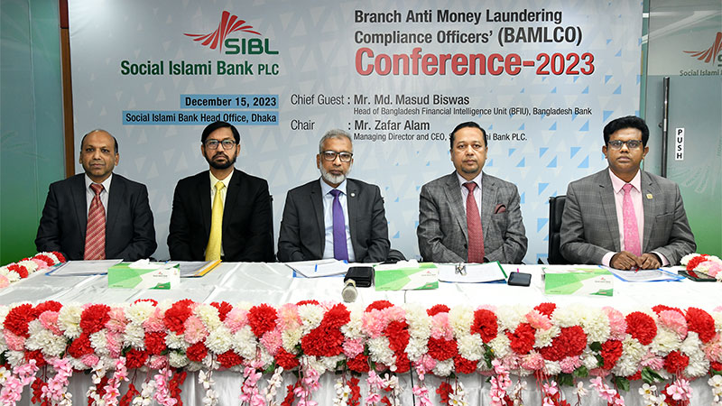 মানিলন্ডারিং ও সন্ত্রাসে অর্থায়ন প্রতিরোধ কার্যক্রম অধিকতর বাস্তবমুখী ও জোরদার করার লক্ষ্যে শুক্রবার (১৫ ডিসেম্বর) সোশ্যাল ইসলামী ব্যাংকের (এসআইবিএল) “শাখা মানিলন্ডারিং প্রতিরোধ পরিপালন কর্মকর্তা (BAMLCO) সম্মেলন-২০২৩” অনুষ্ঠিত হয়েছে।