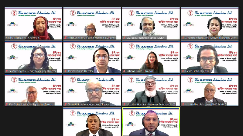 দি একমি ল্যাবরেটরিজ লিমিটেডের ৪৭তম বার্ষিক সাধারণ সভা সোমবার (১৮ ডিসেম্বর) সকাল ১১ টা ৩০ মিনিটে ডিজিটাল প্ল্যাটফর্মে অনুষ্ঠিত হয়।
