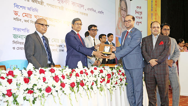 অর্থ মন্ত্রণালয়ের সিনিয়র সচিব ও জাতীয় রাজস্ব বোর্ডের চেয়ারম্যান আবু হেনা মুহাম্মদ রহমাতুল মুনিম বুধবার (২০ ডিসেম্বর) বঙ্গবন্ধু আন্তর্জাতিক সম্মেলন কেন্দ্রে আয়োজিত জাতীয় ট্যাক্স কার্ড ও সেরা করদাতা সম্মাননা-২০২৩ প্রদান অনুষ্ঠানে ইসলামী ব্যাংকের ম্যানেজিং ডাইরেক্টর ও সিইও মুহাম্মদ মুনিরুল মওলা এবং ডেপুটি ম্যানেজিং ডাইরেক্টর মোঃ আকিজ উদ্দীনের নিকট ক্রেস্ট ও সার্টিফিকেট হস্তান্তর করেন।