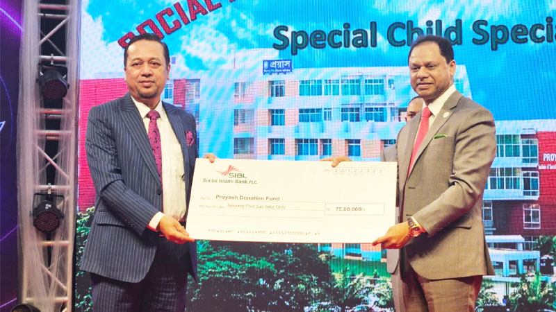 সোশ্যাল ইসলামী ব্যাংক পিএলসি (এসআইবিএল) সামাজিক দায়বদ্ধতার অংশ হিসেবে সেনাবাহিনীর তত্ত্বাবধানে বিশেষ চাহিদাসম্পন্ন শিশুদের জন্য পরিচালিত ইনস্টিটিউট অব স্পেশাল এডুকেশন ‘‘প্রয়াস’’ কে ৭৫ লক্ষ টাকার আর্থিক অনুদান প্রদান করেছে।
