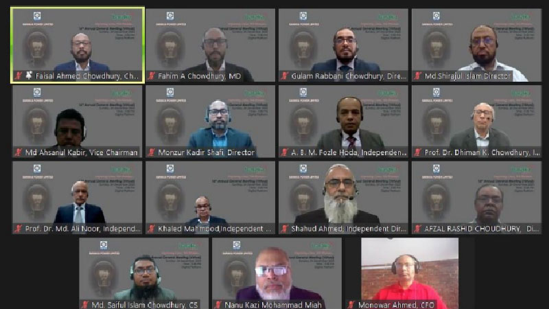 বেসরকারী বিদ্যুৎ উৎপাদনকারী প্রতিষ্ঠান বারাকা পাওয়ার লিমিটেডের ১৬ তম বার্ষিক সাধারণ সভা (এজিএম) অনুষ্ঠিত হয়েছে। কোম্পানি সেক্রেটারি মোহাম্মদ সাইফুল ইসলাম চৌধুরীর সঞ্চালনায় আজ (২৪ ডিসেম্বর) বেলা ৩ টায় ডিজিটাল প্লাটফর্মে সভাটি অনুষ্ঠিত হয়।