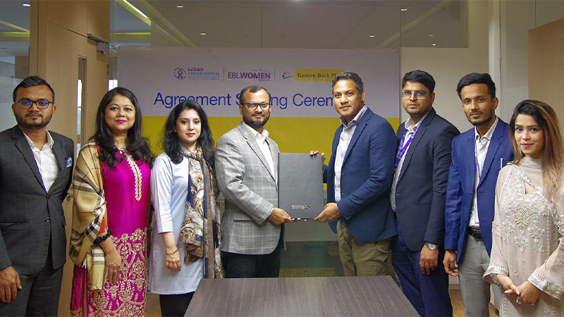ইবিএল হেড অফ লায়াবিলিটি এন্ড ওয়েলথ ম্যানেজমেন্ট শারমিন আতিক, হেড অফ প্রায়োরিটি এন্ড উইমেন ব্যাংকিং তানজেরি হক, ল্যাবএইড ক্যান্সার হাসপাতাল এন্ড সুপার স্পেশালিটি সেন্টারের ডেপুটি ম্যানেজের- কর্পোরেট মার্কেটিং মোহাম্মদ আল- হাসিব এ সময় উপস্থিত ছিলেন।