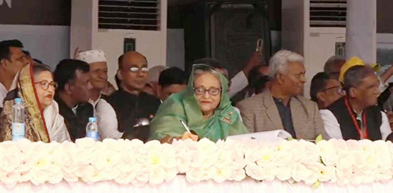 শেখ হাসিনা মঞ্চে উঠার পর একটি দেশাত্মবোধক গান ও নাচ (ধান নদী খাল, এ তিনে বরিশাল) দিয়ে শেখ হাসিনাকে স্বাগত জানান শিল্পীরা।