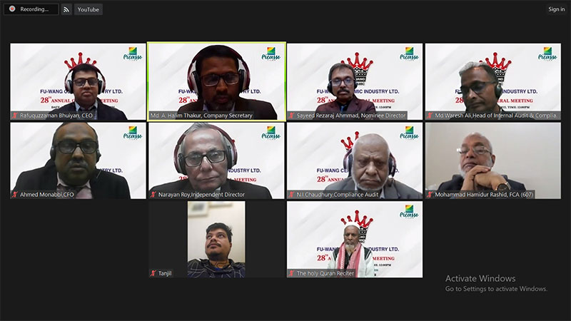 ফু-ওয়াং সিরামিক ইন্ডাষ্ট্রি লিমিটেডের ২৮তম বার্ষিক সাধারণ সভা রবিবার (৩১ ডিসেম্বর) ডিজিটাল প্ল্যাটফর্মে অনুষ্ঠিত হয়েছে। সভায় সভাপতিত্ব করেন পরিচালক, সৈয়দ রেজারাজ আহমেদ।