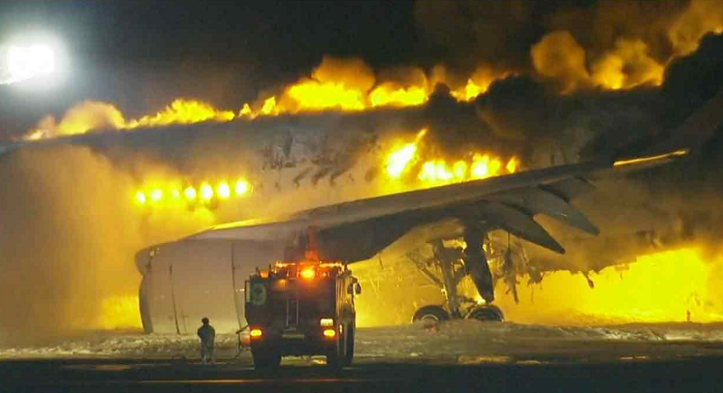 জাপান এয়ারলাইন্সের বিমানটি অবতরণের সময় রানওয়েতে থাকা উপকূলরক্ষী বাহিনীর বিমানের সাথে সংঘর্ষ হয়। এতে জাপান এয়ারলাইন্সের যাত্রীবাহী বিমানে আগুন ধরে যায়।