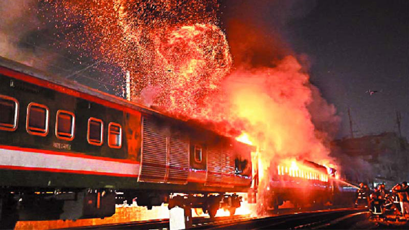 এর আগে গত ১৯ ডিসেম্বর রাজধানীর তেজগাঁও স্টেশনে মোহনগঞ্জ এক্সপ্রেসে আগুন দেয় দুর্বৃত্তরা। ওই ঘটনায় মা ও শিশুসহ চারজন পুড়ে মারা যান। আহত হন আরও অন্তত একজন। তবে আগুন দেওয়ার ঘটনায় জড়িতদের এখনও গ্রেপ্তার করতে পারেনি আইনশৃঙ্খলা রক্ষাকারী বাহিনী।