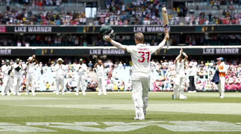 ড্রেসিং রুমে ফিরে যাওয়ার পথে হেলমেটে আলতো করে চুমু এঁকে দিলেন ওয়ার্নার। পুরো সিডনির গ্যালারি তখন হাত তালিতে অভিবাদন জানাচ্ছিল ক্যারিয়ারের শেষ টেস্ট খেলতে নামা এই ওপেনারকে। দু হাত প্রসারিত করে, উঁচিয়ে সমর্থকদের সেই অভিবাদনের জবাব দিলেন ওয়ার্নার। ভার্চুয়াল উপায়ে মাঠে লেখা উঠলো ‘থ্যাংক ইউ ডেভি’। ওয়ার্নারের বিদায়ের পর স্টিথ স্মিথকে সঙ্গে নিয়ে অস্ট্রেলিয়ার ৮ উইকেটের জয় নিশ্চিত করেন ৬২ রান করা ল্যাবুশেন। তাতে তিন ম্যাচের তিনটিতে জিতে পাকিস্তানকে হোয়াইটওয়াশ করলো স্বাগতিকরা।