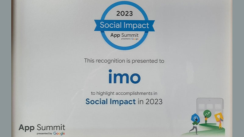 প্রবাসীদের যোগাযোগ সহজীকরণ থেকে শুরু করে , সরকারের ৩৩৩ হেল্পলাইনের সাথে সংযুক্তি; বছরজুড়ে এমনি নানাবিধ সামাজিক সেবামূলক কাজ চালিয়ে গেছে বিশ্বের জনপ্রিয় প্ল্যাটফর্ম ইমো। এরই স্বীকৃতিস্বরূপ প্রতিষ্ঠানটিকে এবার ‘স্যোশাল ইমপ্যাক্ট অ্যাওয়ার্ড’ পুরস্কারে ভুষিত করলো গুগল।