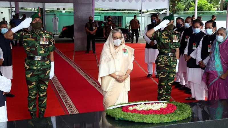 বুধবার (১০ জানুয়ারি) সকালে ধানমন্ডি ৩২ নম্বরে বঙ্গবন্ধু স্মৃতি জাদুঘরের সামনে জাতির পিতার প্রতিকৃতিতে ফুল দিয়ে শ্রদ্ধা জানান প্রধানমন্ত্রী।