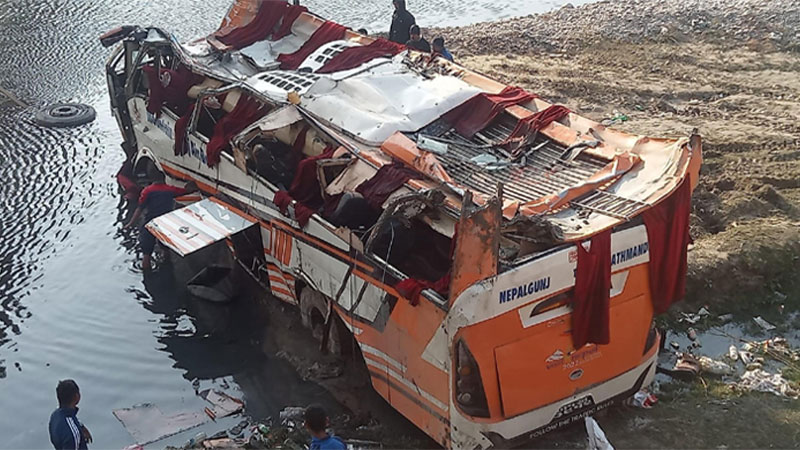 নেপালে সেতুর ওপর থেকে একটি যাত্রীবাহী বাস নদীতে পড়ার ঘটনা ঘটেছে। শুক্রবার (১২ জানুয়ারি) রাতে দেশটির ডাং জেলার রাপ্তি নদীতে বাসটি পড়ে যায়।