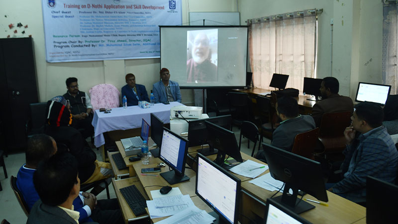 নোয়াখালী বিজ্ঞান ও প্রযুক্তি বিশ্ববিদ্যালয়ের (নোবিপ্রবি) কর্মকর্তা ও কর্মচারীদের অংশগ্রহণে ডি-নথি বাস্তবায়নে ‘ট্রেনিং অন ডি-নথি এপ্লিকেশন এন্ড স্কিল ডেভলপমেন্ট’ বিষয়ক তিন দিনব্যাপী প্রশিক্ষণ শুরু হয়েছে। প্রশিক্ষণটি আজ রবিবার (১৪ জানুয়ারি) বিশ্ববিদ্যালয়ের লাইব্রেরি ভবনের শিক্ষা বিভাগের কম্পিউটার ল্যাব কক্ষে নোবিপ্রবি ইনস্টিটিউশনাল কোয়ালিটি অ্যাসুরেন্স সেলের (আইকিউএসি) আয়োজনে অনুষ্ঠিত হয়।