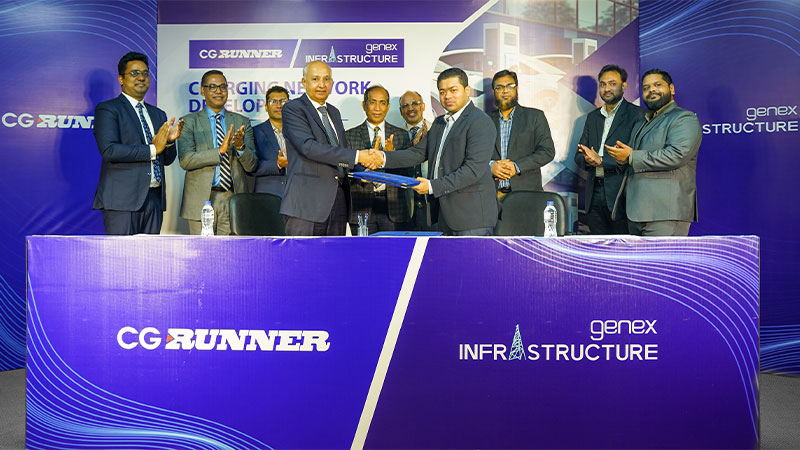 দেশজুড়ে বৈদ্যুতিক গাড়ির (ইলেকট্রিক ভেহিকেল – ইভি) বিস্তৃত চার্জিং নেটওয়ার্ক গড়ে তুলতে সিজি রানার বাংলাদেশ লিমিটেড ও জেনেক্স ইনফ্রাস্ট্রাকচার লিমিটেডের মধ্যে একটি সমঝোতা স্মারক স্বাক্ষরিত হয়েছে।