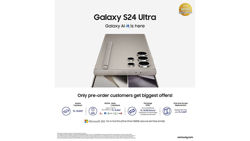 প্রি-অর্ডার লিঙ্কঃ https://www.samsung.com/bd/smartphones/galaxy-s24-ultra/?page=home