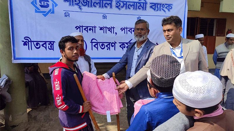 শাহজালাল ইসলামী ব্যাংক পিএলসি’র পাবনা শাখা সম্প্রতি ব্যাংকের সিএসআর কার্যক্রমের অংশ হিসেবে শহরের সিংগা এলাকার মানব কল্যান ট্রাস্ট মাঠ প্রাঙ্গণে গরীব, গৃহহীন, প্রতিবন্ধী, দৃষ্টিহীন, দুঃস্থ ও এতিম শিশুদের মাঝে শীতবস্ত্র হিসেবে কম্বল বিতরণ করেছে।