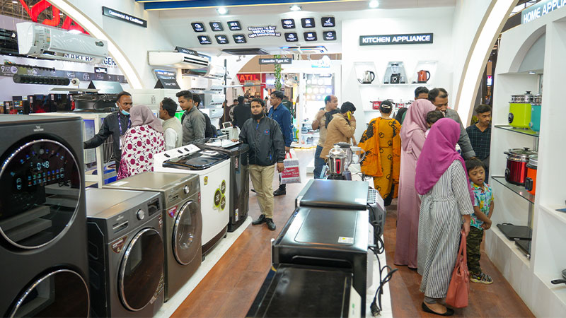 মেলা ঘুরে দেখা গেছে, চলমান আন্তর্জাতিক বাণিজ্য মেলায় এক ছাদের নিচে বিশ্বের সর্বাধুনিক প্রযুক্তি ও ফিচারসমৃদ্ধ স্মার্ট ফ্রিজ, এসি, টিভি, লিফট, ওয়াশিং মেশিন, ল্যাপটপ, কম্পিউটার, ইলেকট্রিক বাইক, হোম ও কিচেন অ্যাপ্লায়েন্সেসসহ অসংখ্য ধরনের ইলেকট্রনিক্স ও ইলেকট্রিক্যাল পণ্যসামগ্রী প্রদর্শন করছে ওয়ালটন। পূর্বাচলের বঙ্গবন্ধু বাংলাদেশ-চায়না ফ্রেন্ডশিপ এক্সিবিশন সেন্টারে চলছে মাসব্যাপী এই বাণিজ্য মেলা। কনজ্যুমার গুডসের পাশাপাশি এলজিপি, এলডিপি, নাট, বোল্ট ও স্ক্রুসহ ইন্ডাস্ট্রিয়াল সলিউশনস প্রদর্শন করছে প্রতিষ্ঠানটি।