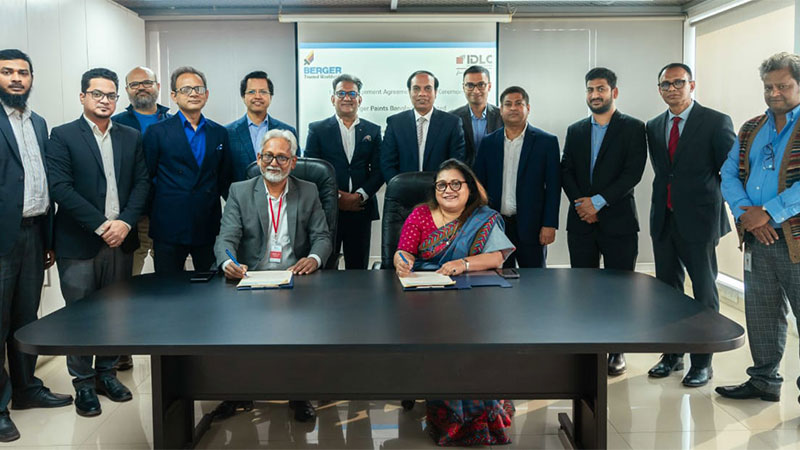 বার্জার পেইন্টসের এমডি রূপালী হক চৌধুরী এবং আইডিএলসি ইনভেস্টমেন্টসের এমডি রেজা উদ্দিন আহমেদ নিজ নিজ প্রতিষ্ঠানের পক্ষে চুক্তি স্বাক্ষর করেন।