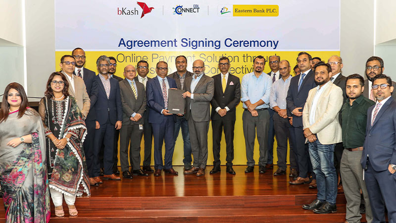 দেশের শীর্ষস্থানীয় মোবাইল আর্থিক সেবা প্রদানকারী প্রতিষ্ঠান বিকাশ সম্প্রতি বেসরকারীখাতের ইস্টার্ন ব্যাংক পিএলসির (ইবিএল) সঙ্গে একটি চুক্তি স্বাক্ষর করেছে।