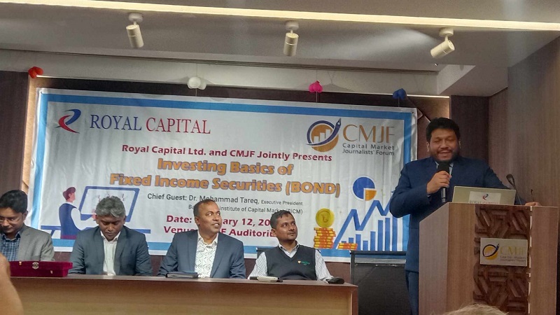 সোমবার (১২ ফেব্রুয়ারি) ক্যাপিটাল মার্কেট জার্নালিস্টস ফোরাম (সিএমজেএফ) এবং রয়্যাল ক্যাপিটালের যৌথ উদ্যোগে আয়োজিত ‘ইনভেস্টিং বেসিকস অব ফিক্সড ইনকাম সিকিউরিটিজ’ শীর্ষক কর্মশালায় প্রধান অতিথির বক্তব্যে তিনি এসব কথা বলেন। রাজধানীর পুরানা পল্টনের আলরাজি কমপ্লেক্সে সিএমজেএফের অডিটোরিয়ামে কর্মশালাটি অনুষ্ঠিত হয়।