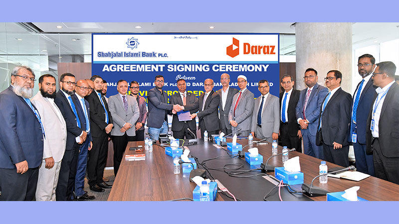 শাহ্জালাল ইসলামী ব্যাংক পিএলসি ও দারাজ বাংলাদেশ লিমিটেডের মধ্যে মঙ্গলবার (১৩ ফেব্রুয়ারি) ব্যাংকের কর্পোরেট প্রধান কার্যালয়ে এক চুক্তি স্বাক্ষরিত হয়েছে।