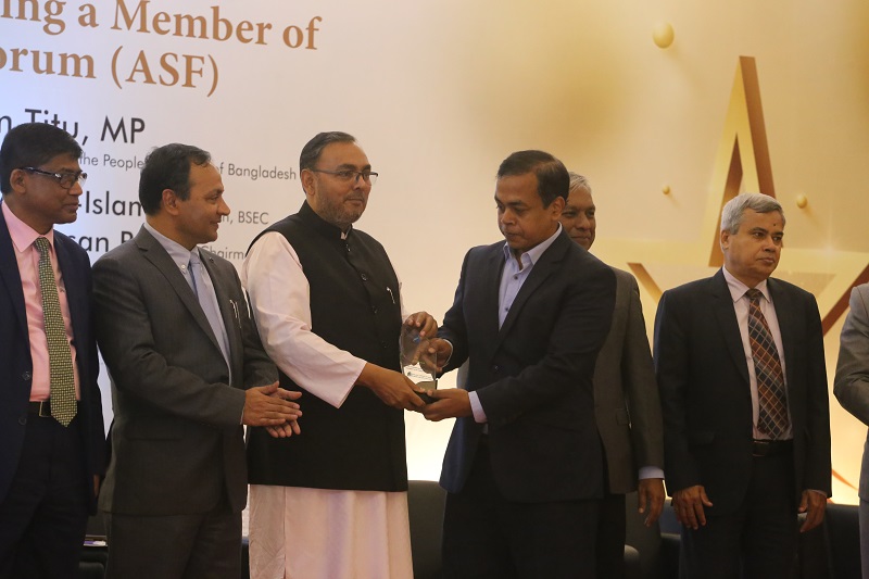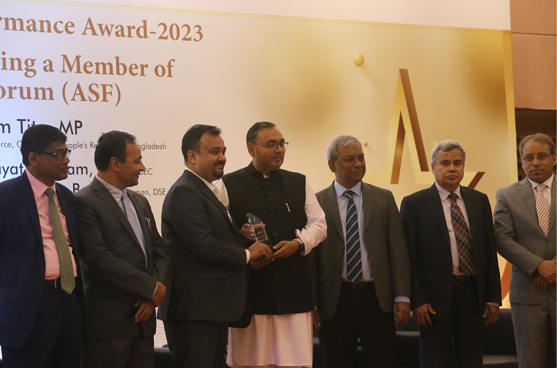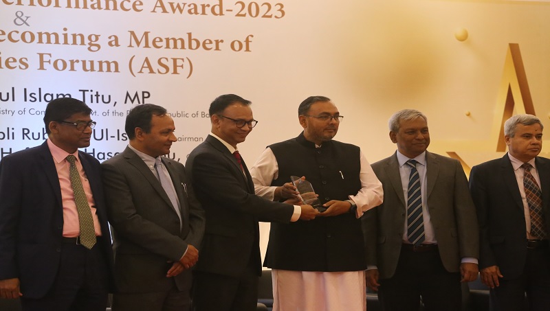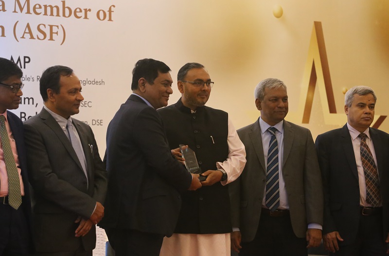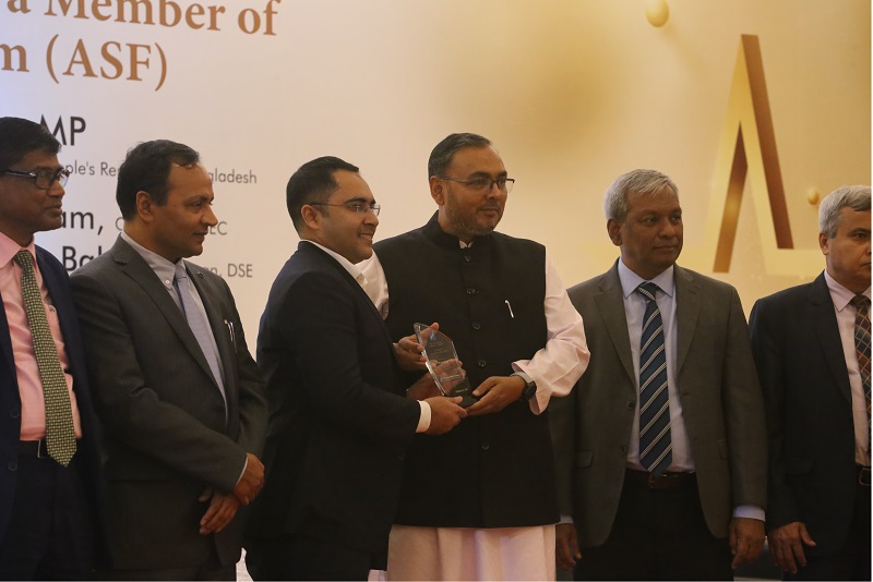 অষ্টম সেরা ব্রোকারের পুরস্কার নিচ্ছেন শান্তা সিকিউরিটিজের সিইও কাজী আসাদুজ্জামান