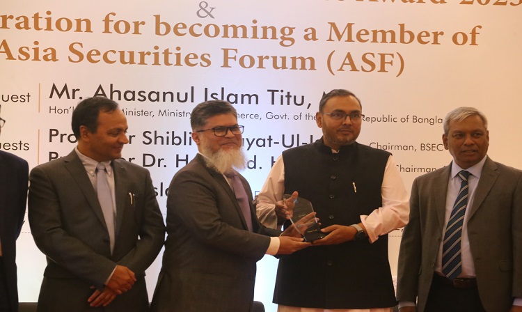 লেনদেনে দ্বিতীয় সেরা ব্রোকারের পুরস্কার নিচ্ছেন লংকাবাংলা সিকিউরিটিজের সিইও খন্দকার সাফ্ফাত রেজা