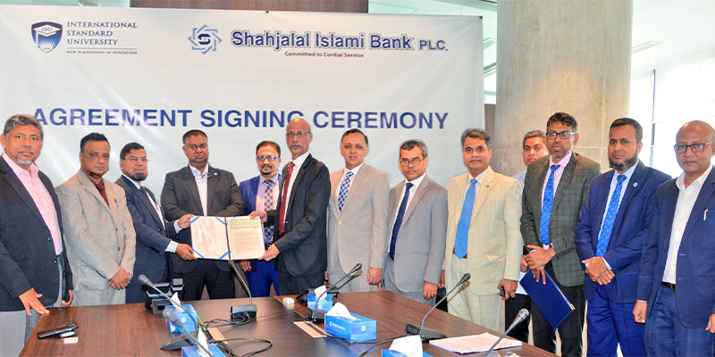 শাহ্জালাল ইসলামী ব্যাংক পিএলসি ও ইন্টারন্যাশনাল স্ট্যান্ডার্ড ইউনিভার্সিটি’র (আইএসইউ) মধ্যে বৃহস্পতিবার (১৫ ফেব্রুয়ারি) ব্যাংকের কর্পোরেট প্রধান কার্যালয়ে এক চুক্তি স্বাক্ষরিত হয়েছে।